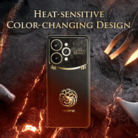 Unleash the Golden-in-Black Design of the realme 15 Pro Game of Thrones Edition, inspired by House Targaryen and precision-crafted with 0.01mm detailing. A true collector’s smartphone where Game of Thrones meets realme innovation. The back cover shifts color above 44°C, tested in realme labs (may vary in actual use). Note: the heat-sensitive color-changing effect may gradually reduce over time, which is not a quality issue.