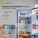 This single-door refrigerator offers quick cooling using good-quality copper capillaries. You can also get ice formed in just 90 minutes. It even has stabiliser-free operations where the machine can run smoothly during voltage fluctuations between 160-260 V. With a huge storage capacity, the refrigerator also comes with durable glass shelves and a removable gasket.