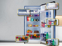 You can arrange your essentials seamlessly with the machine’s thoughtfully designed storage options. The refrigerator is equipped with a 12 L vegetable crisper, keeping your food items fresh, dedicating spaces for eggs, bottles, spices, or even cosmetics, and helping you keep everything in its place.