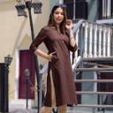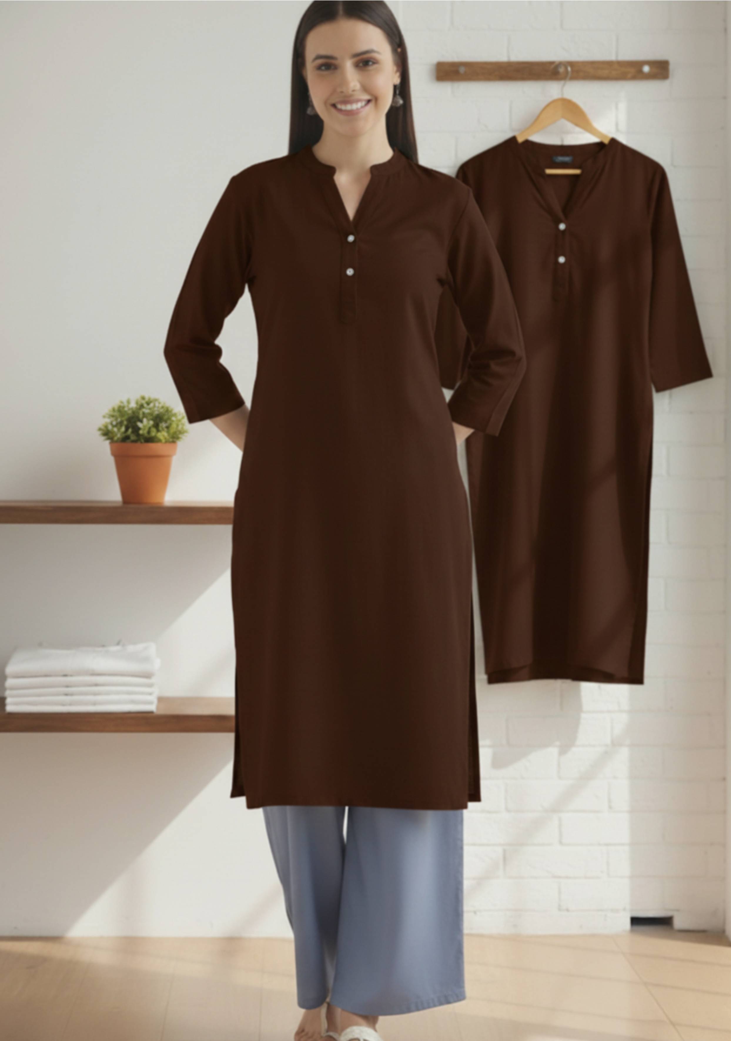 REAM Women Solid Pure Cotton Straight Kurta (Brown)
