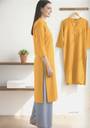 REAM Women Solid Pure Cotton Straight Kurta (Yellow)