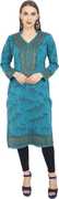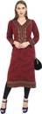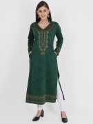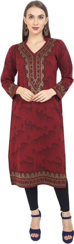 Features: Straight Kurti, Full Sleeves, Mandarin Collar V Neck, Calf Length, 2 Side Pockets, Jacquard Knitting, Length is 45-46 Inches