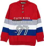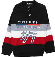 Rebiva Striped Mandarin Neck Casual Boys Black, Red, White, Grey Sweater