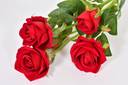 Beautiful Red Rose Flower Bunch - Natural Looking Leaves 5 Flowers 12 inch/30cm