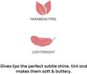 This tinted moisturizing lip glides on effortlessly, gives a gentle touch of colour and shine to the lips with SPF. Gives lips the perfect subtle shine, tint and makes them soft & buttery. It is the best way to get rid of dry or chapped lips. The hydrating oils work together to ensure you have supple and healthy lips.