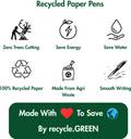 WRITE GREEN RECYCLED PAPER PEN | PLANTABLE | TRANSPERANT SEED CAP | BLUE INK | PACK OF 5 | 2 SETS | ECO-FRIENDLY
