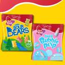 Ingredients | - Sour Bears: Sugar, Glucose Syrup, Maize Starch, Acids (Lactic Acid, Malic Acid), Gelatine, Acidity Regulator (sodium malates), Natural Flavourings, Concentrate From (Black Carrot, Spirulina, Safflower, Carrot, Blackcurrant), Flavourings, Colours (paprika extracts, curcumin)., Sour fizzy Bubble Pop: Glucose syrup, sugar, water, gelatine, acid (citric acid), colours (E170, E120, E133), fully hydrogenated palm fat, flavouring.