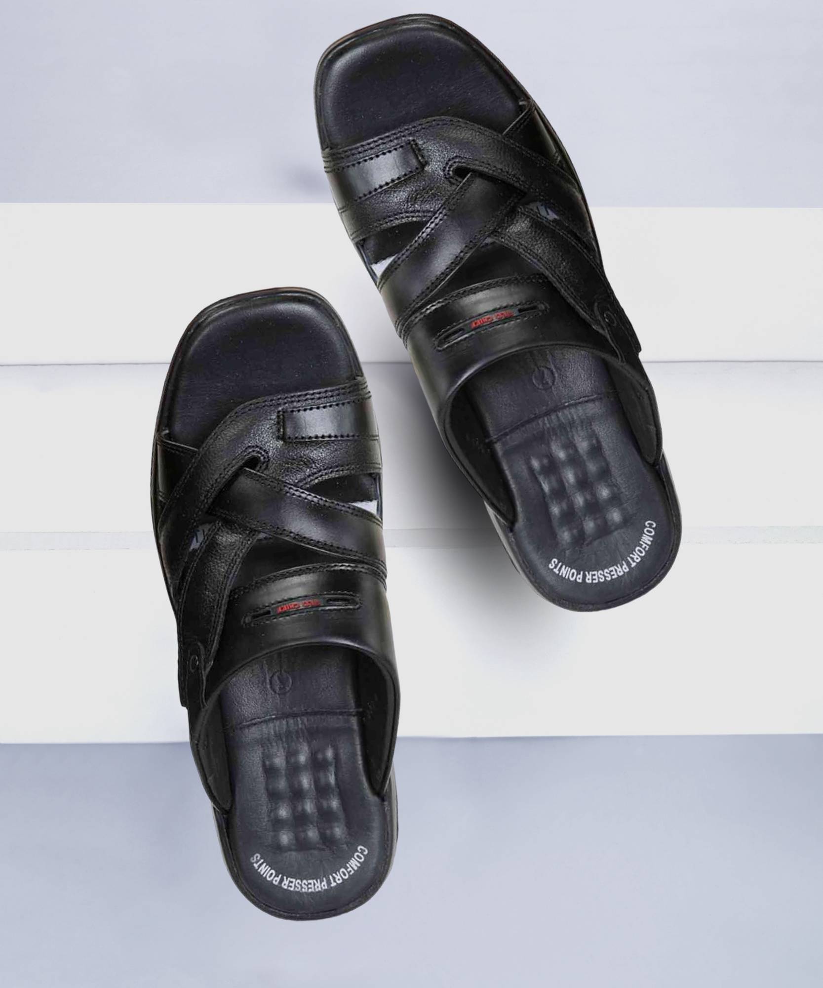 Accentuate your look with this pair of Black men's Slippersss by Red Chief. These Slippersss add a crisp style to your casual look when you are out with friends. High on style with comfort and grip these Slippersss have genuine leather construction and PU sole that makes it lighter in weight. These Slippersss will help you walk with confidence.