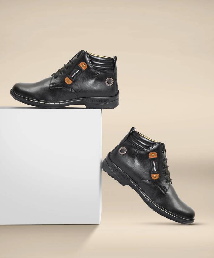 Red Chief presents black high ankle genuine leather shoes by PowerFlex in their men's casual shoe collection with rubber outsole that provides better grip and surface control while the TRP sole provides improved cushioning, 360� comfort and flexibility . These men's casual shoes have an anti heel thrust padding for shock absorbing which makes them the best pick in your men's casual shoes collection.
