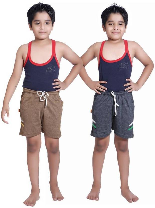 Short For Boys Self Design Cotton Linen (Brown, Pack of 2)