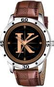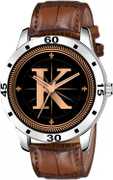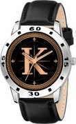 Fancy Design Stylish ALPHABET K Dial Black Leather Strap Men Wrist Watch