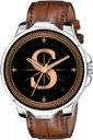 Fancy Design Stylish ALPHABET S Dial Brown Leather Strap Men Wrist Watch
