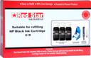 A black HP ink cartridge is a plastic shell with a piece of sponge in it. The sponge is used to store ink in it. Red Star Ink Refill Kit is a product for refilling your used ink cartridge. Refilling means filling sufficient ink into the sponge so as to reuse the cartridge.