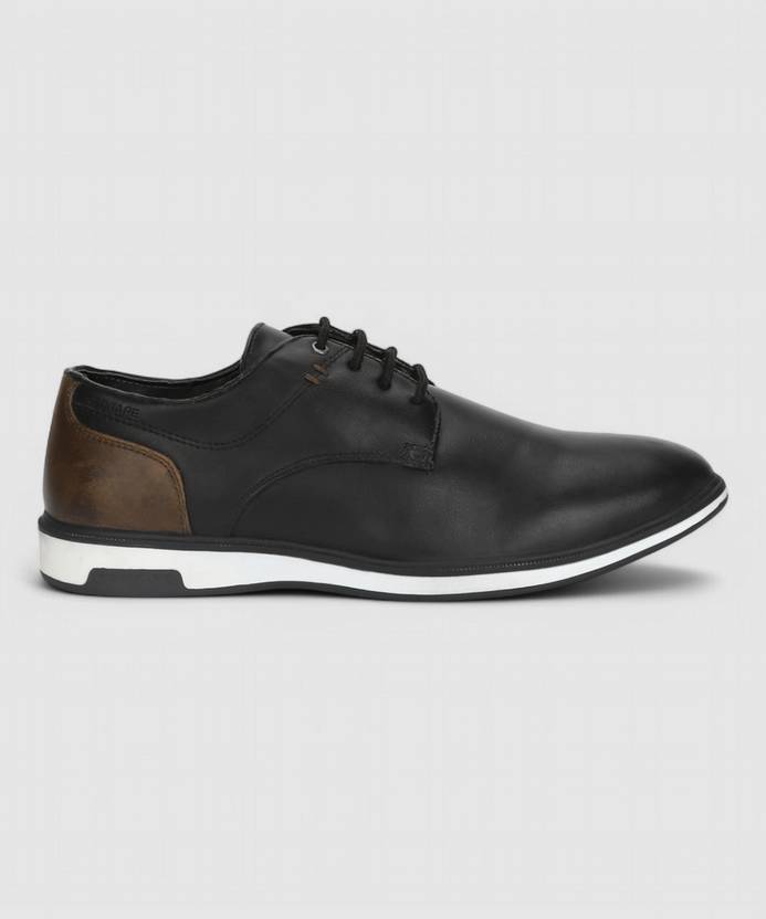 Men On The Move Who Prioritise Comfort Above All Can Choose This Pair Of Black Lace-Ups By Red Tape.Tpr (Thermoplastic Rubber) Sole, Its Upper Synthetic Pu (Polyurethane) Material Comes With A Comfy Round Toe And Cushioned Collar For Added Ease And Smooth Walking. One Can Also Notice The Stamped Brand Name On Its Side Panel.