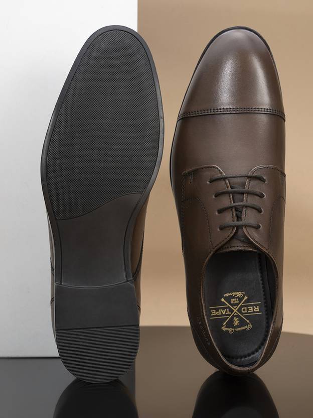 Amazing finish: With the bold and ravishing touch, this pair will make the perfect fashion statement.Product Specifications:-Material: Sole - TPR | Upper - Real Leather | Insole material - FoamThese low-cut formal shoes are a perfect fit and are made up of real leather. The foam insole material and round-toe shape give the perfect classy vibes.Features: Heel Height - 1.0 inches | Toe Shape - RoundBenefits: A must-have pair because of the elegance and style it offers, real leather, and classy finish with low-cut pattern.Formal : Derby Shoes