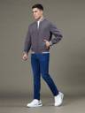 This full sleeve navy and charcoal reversible jacket offers two distinct looks in one. Featuring a baseball collar and made from a durable combination of nylon and polyester. The jacket includes two convenient side pockets and a secure zip closure, making it a great choice for everyday wear.