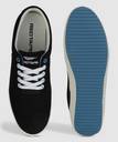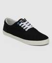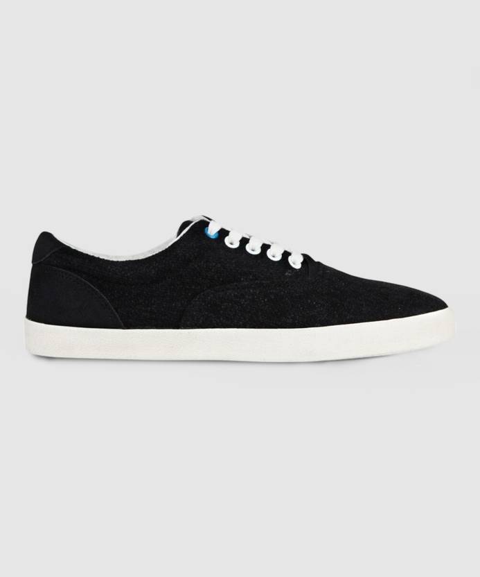 A pair of round-toed black sneakers, has regular styling, lace-up detailCanvas upperCushioned footbedTextured and patterned rubber outsole. Youll love to slip on a pair of casual shoes by Red Tape. These black shoes can be teamed with slim jeans and a trendy button-down shirt when youre meeting the guys for dinner and drinks.