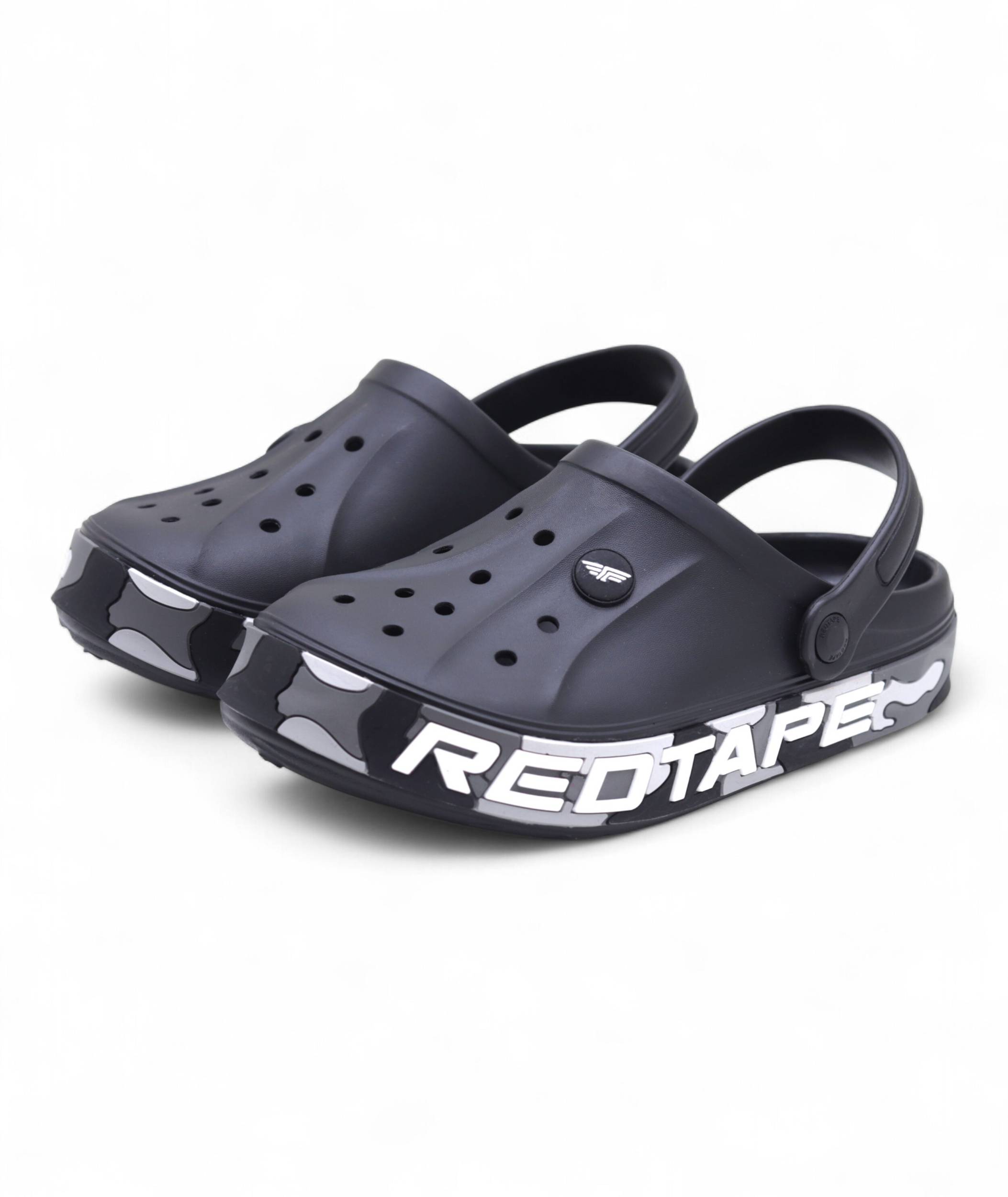 Red Tape Men's Comfortable Clogs are crafted from high-quality EVA material, offering lightweight durability and long-lasting comfort. The breathable design with perforated ventilation holes keeps feet cool and dry, while the adjustable back strap allows them to be worn as slip-ons or secured for a stable fit. The cushioned footbed provides superior comfort, and the non-slip sole ensures reliable grip on various surfaces. Easy to clean and versatile for both indoor and outdoor activities, these clogs are perfect for casual outings, beach trips, gardening, or daily wear, with a stylish design that adds a modern touch.