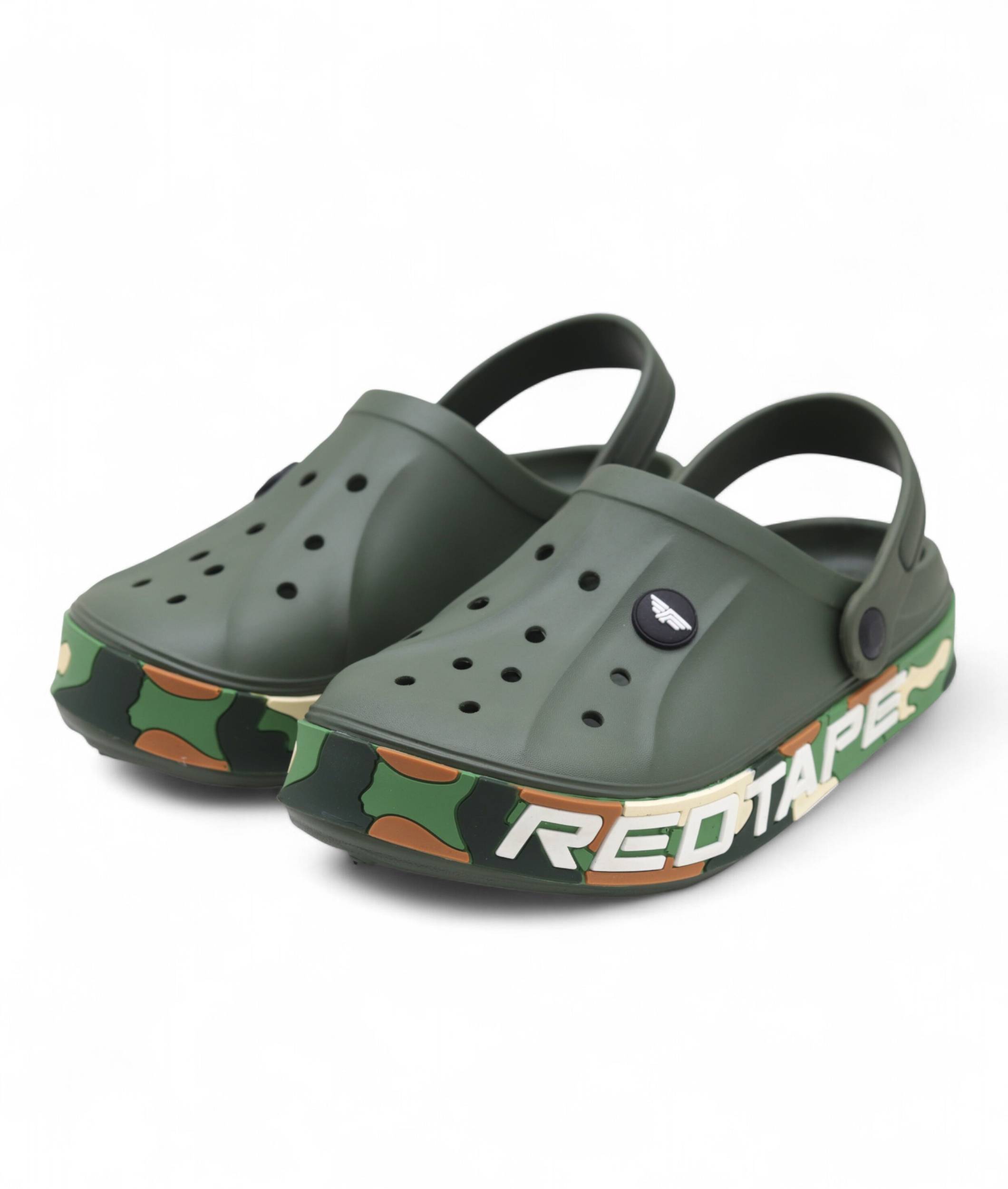 Red Tape Men's Comfortable Clogs are crafted from high-quality EVA material, offering lightweight durability and long-lasting comfort. The breathable design with perforated ventilation holes keeps feet cool and dry, while the adjustable back strap allows them to be worn as slip-ons or secured for a stable fit. The cushioned footbed provides superior comfort, and the non-slip sole ensures reliable grip on various surfaces. Easy to clean and versatile for both indoor and outdoor activities, these clogs are perfect for casual outings, beach trips, gardening, or daily wear, with a stylish design that adds a modern touch.