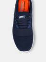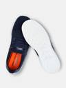 A pair of navy blue walking sports shoes, has regular styling, lace-up detailTextile upperCushioned footbedTextured and patterned outsole provided by brand/manufacturer. Update your collection of shoes with these top-of-the-line sports shoes from Red Tape. This navy blue pair can be teamed with sports shorts and a casual tee when youre going to the gym with your friends.