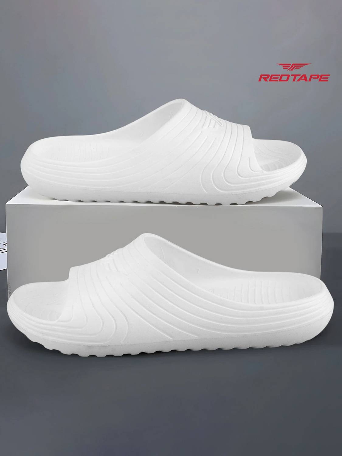 RED TAPE Men Slides (White , 8)
