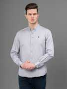 Collar with Buttons: This shirt has a collar that can be fastened with buttons, adding a simple yet stylish touch to its design.