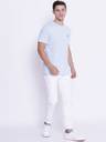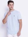 Go casual with this basic light blue tee, designed for everyday wear. Pair it with a rolled up sleeved shirt to step out for a date night or a meeting at the office. Lightweight and knit in single jersey, this tee is comfortable and breathable.