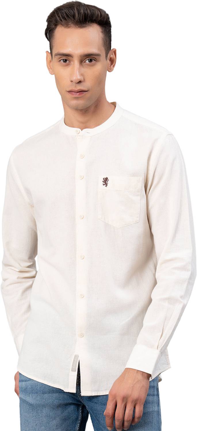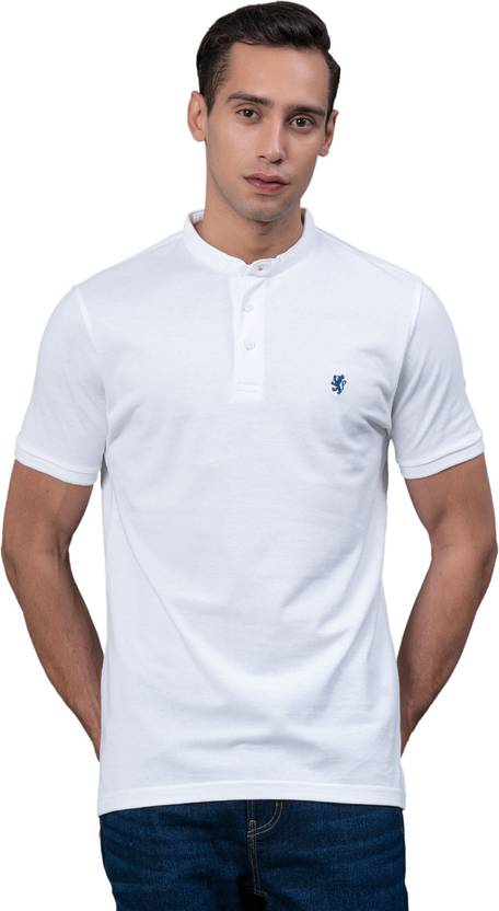 RED TAPE Men Solid Mandarin Collar Pure Cotton White T-Shirt