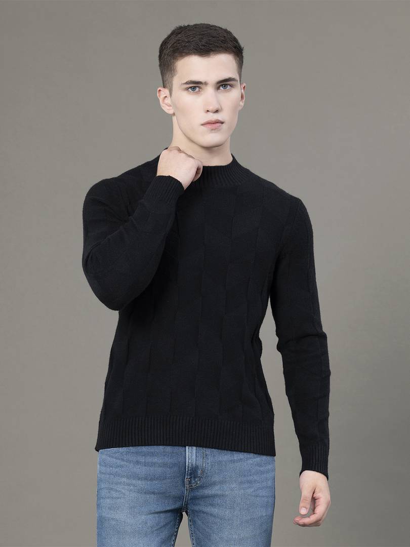 RED TAPE Solid Round Neck Casual Men Black Sweater