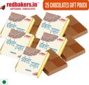 25 personalised premium chocolates in a gift pouch with message on the Chocolate wrapper