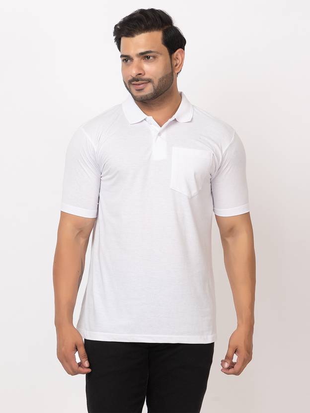 redfort Men Solid Polo Neck Cotton Blend White T-Shirt