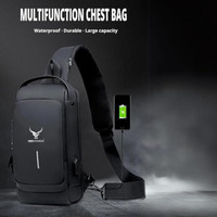 REDHORNS Waterproof Crossbody Chest Bag for Men & Women with USB Charging Port Waterproof Sling Bag (Black, 15 L)