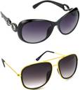 Black & Golden Frame Grey Non Polarized Lens Classic Cool Trendy New Designer Stylish & Eye Protection Over-sized & Rectangular Sunglass Combo Goggles Latest Model Optical Shades Unisex Chasma Medium Sunglassesfor Men Women Boys & Girls