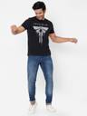 Men Printed Round Neck Pure Cotton Black T-Shirt