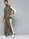Workout Ready Tricot Tracksuit with Top: Tricot Upper sleeve panels, Interlining for collar, center front zipper, pocket bags, and Center front zip binding with regular fit. Bottom: Tricot Side panels, Pocket bags and Interlining for button holes and slim fit