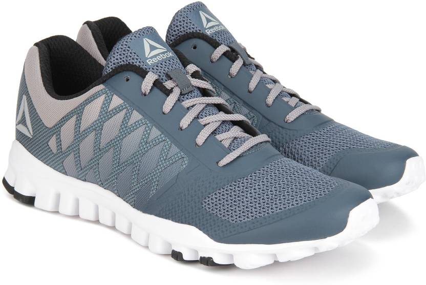 Superb, sleek and stylish Reebok Training shoes for men. Made with REALFLEX Technology which improves flexibility, balance, body awareness and also protects from impact on joints while the upper Mesh construction keeps your feet well ventilated. Mega-split Grooves in the underfoot and edges allow the outsole to flex and expand, increasing the ground contact for a smooth and a quite ride.