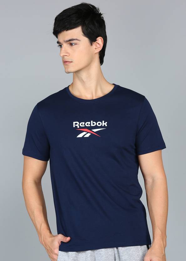 REEBOK Solid Men Crew Neck Navy Blue T-Shirt