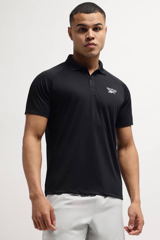 REEBOK Solid Men Polo Neck Black T-Shirt