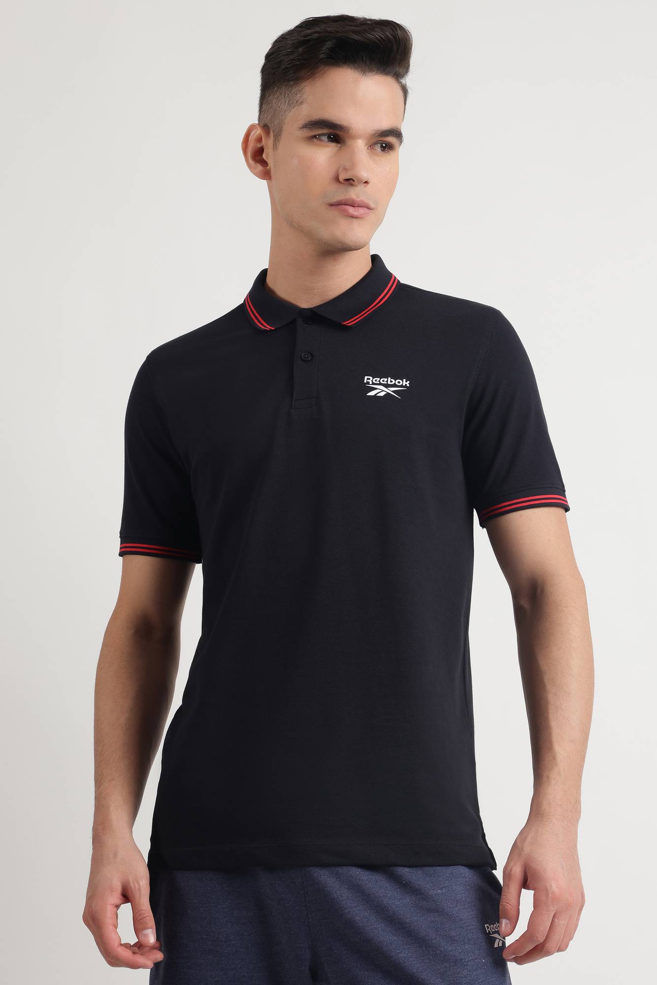 REEBOK Solid Men Polo Neck Black T-Shirt