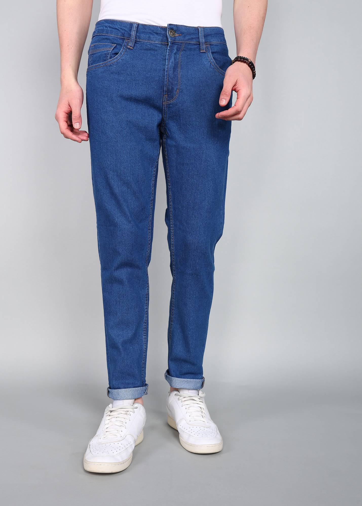 Men Solid Round Neck Cotton Blend Blue T-Shirt