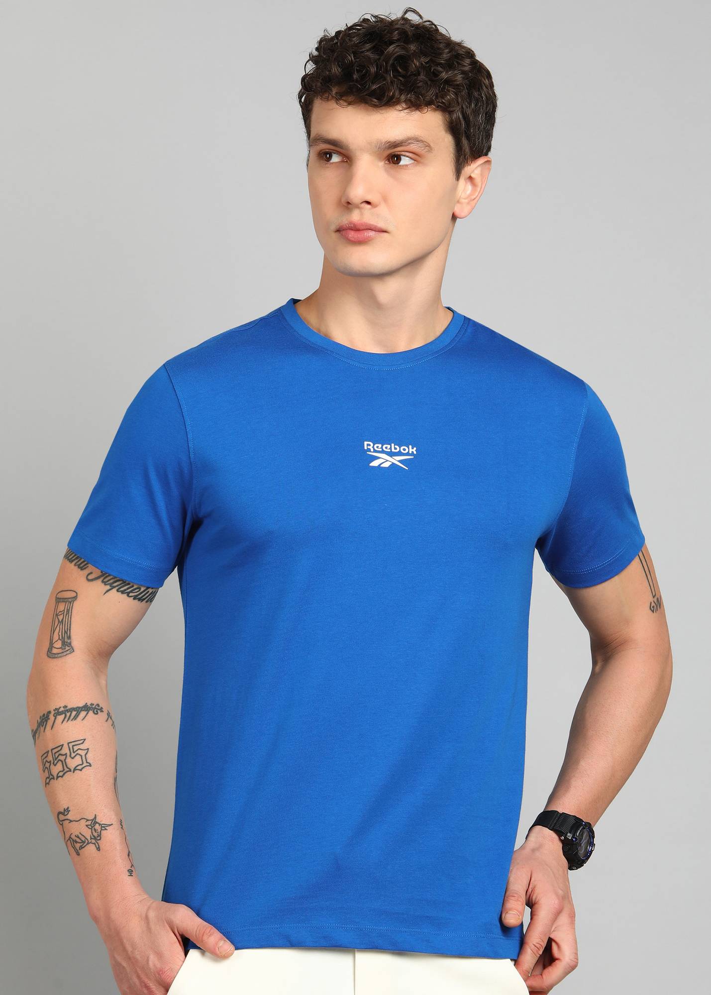 REEBOK Solid Men Round Neck Blue T-Shirt