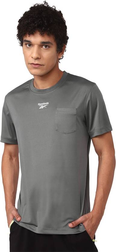 REEBOK Solid Men Round Neck Grey T-Shirt
