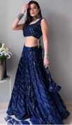 Crafted from luxurious net fabric with intricate thread and sequin embroidery, this lehenga is ideal for evening occasions. The blouse comes with elegant 3/4th sleeves and a flattering neckline, paired with a flowy dupatta for a regal finish.
