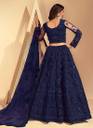 Pheona fab Provide Navy Blue (Dark Blue) Colour Lehenga Choli Courtesy of its semi-stitched design, this set offers flexibility and convenience. Designed with a sweetheart neckline and half sleeves, its blouse complements this lehenga beautifully. This set includes a lehenga, a dupatta, and a blouse, all in free size, ensuring a comfortable, flattering fit for various body types. Moreover, the semi-stitched design of this set ensures that you can customize it to your preference without any hassle. So, whether it is the flattering sweetheart neckline or the airy half sleeves, every detail is crafted with your comfort in mind, allowing you to dance the night away without any constraints.