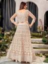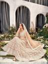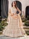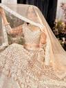 Step into elegance with this exquisite Cream embroidered lehenga choli set, designed to bring a touch of royal charm to your special occasions. Crafted from premium net fabric with a comfortable inner lining, this ensemble showcases intricate white thread embroidery throughout, forming a mesmerizing blend of floral and geometric patterns. The lehenga features multiple horizontal embroidered panels that add volume and a graceful flare, perfect for twirling moments.