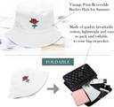 REFFER Rose Embroidered foldable cotton Bucket Hat (White, Pack of 1)