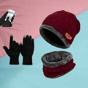 1 Beanie cap + 1 Neck Scarf + 1 Touchscreen Gloves Set