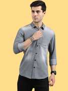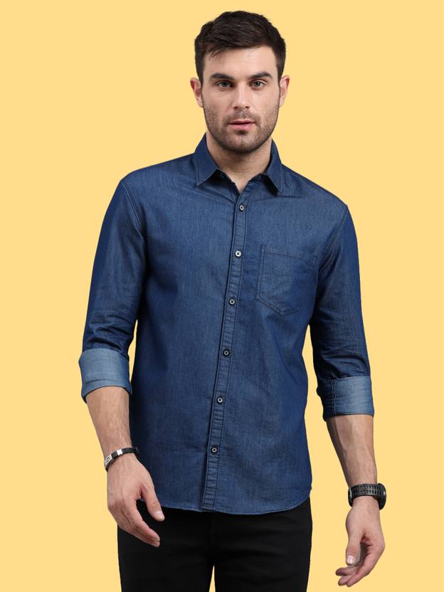 Regrowth Men Solid Casual Dark Blue Shirt