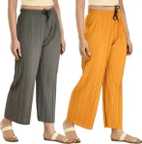 Regular Fit Women Grey, Yellow Trousers