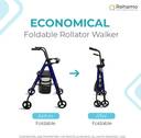 Rollie Eco is an economical rollator walker for senior citizens, which comes with four unidirectional castor wheels., The product comes with brakes for user safety which makes this a safe rollator walker for adults., It comes with a height-adjustable frame that the user can adjust according to their preference; this is a lightweight folding four wheels compact rollator., The unique feature is that this rollator walker comes with a seat and basket where the user can rest and store items while walking., We provide a 1-year warranty for our products. Kindly scan the QR code provided in the warranty card to register the warranty (T&C applied).
